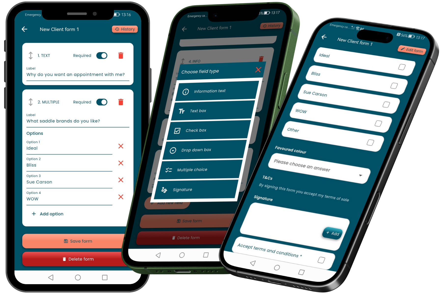 Popular uses: new client onboarding form, T&Cs acknowledgement, aftercare acceptance, vet consent for external approval.